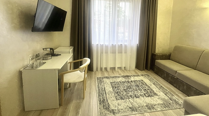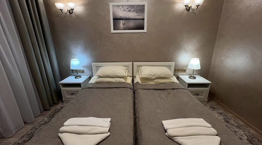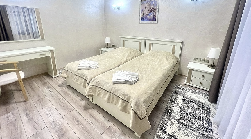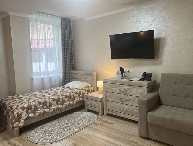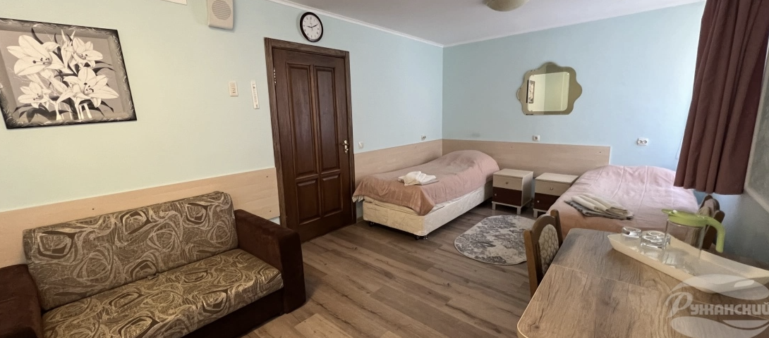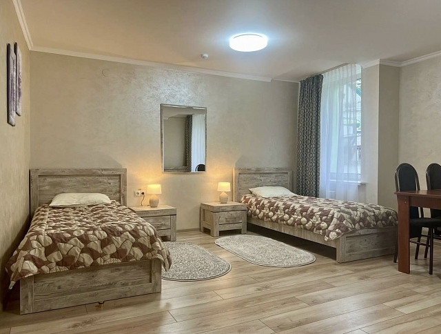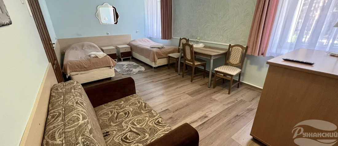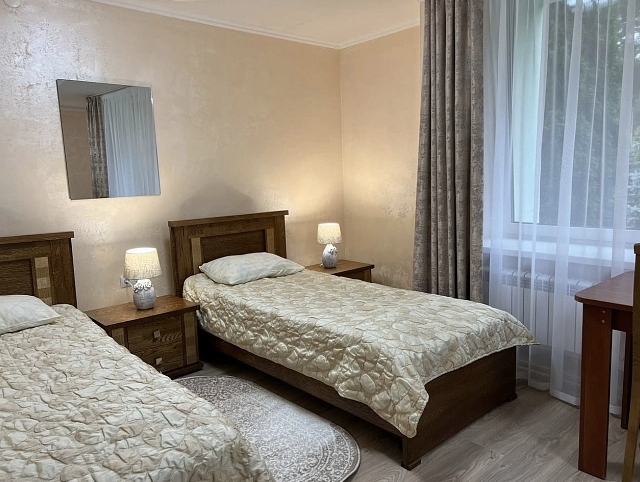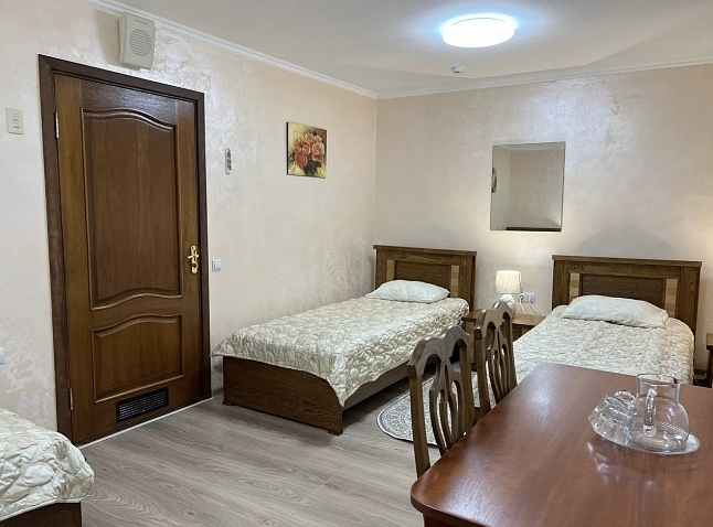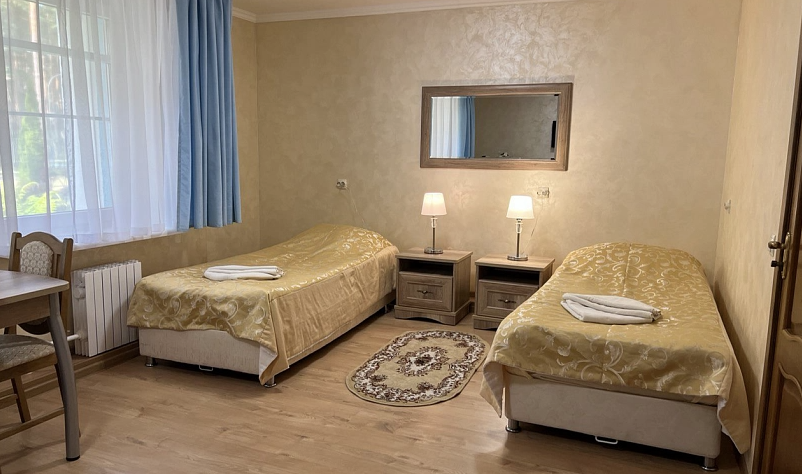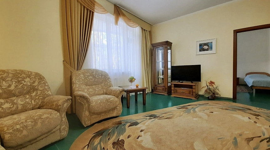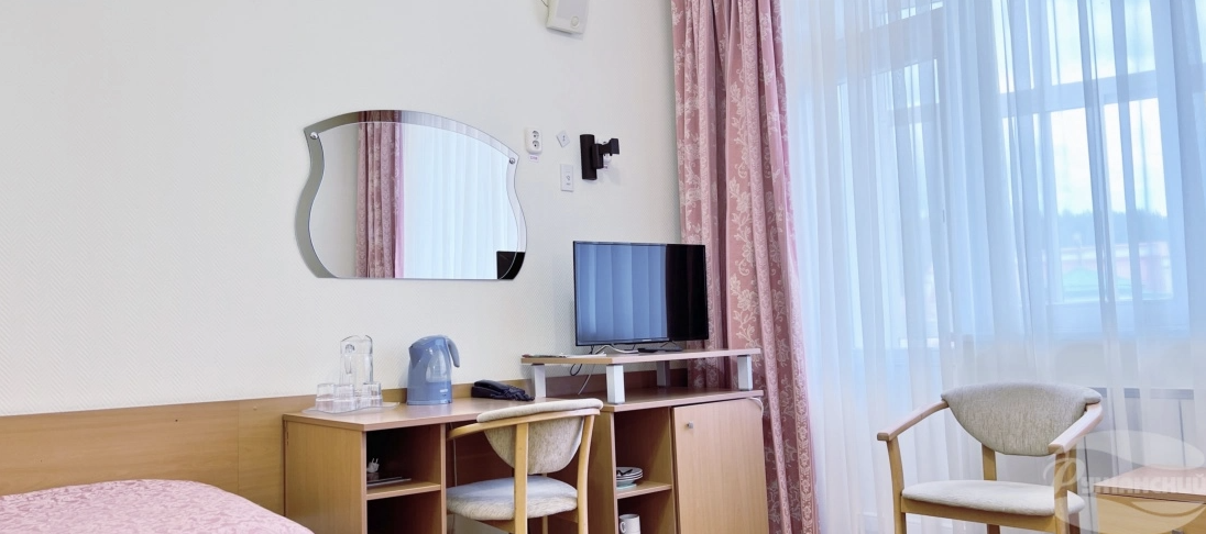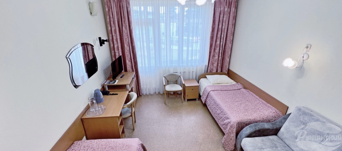 Очень хороший персонал. А вот номер имеет минусы. Нас было 3 человека, пришлось просить коврик под ноги и тумбочку т.к. было только для двоих.А вот кровати были детские, очень узкие и нам дамам под 90 кг. было очень тяжело. Всё таки за цены, которые мы заплатили, хотелось бы нормальные кровати. Ведь санаторий высшей категории. Другие отдыхающие тоже были не довольны.