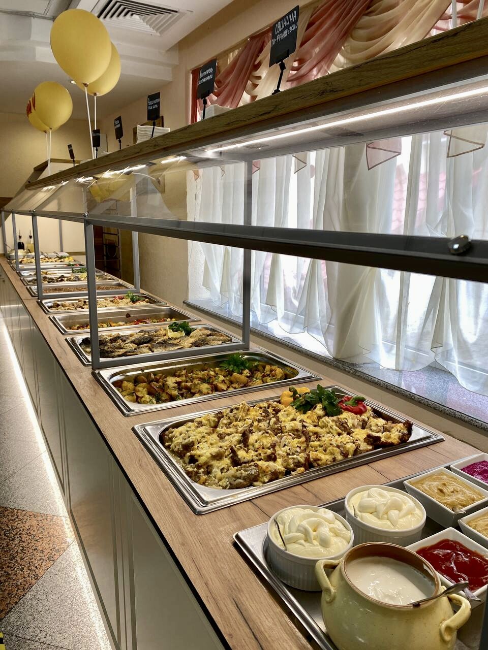 В столовой организовано пятиразовое питание по системе "Шведский стол". Блюда приготовлены с учетом здорового питания. Столовая расположена в здании административно-лечебного корпуса на 1 этаже.